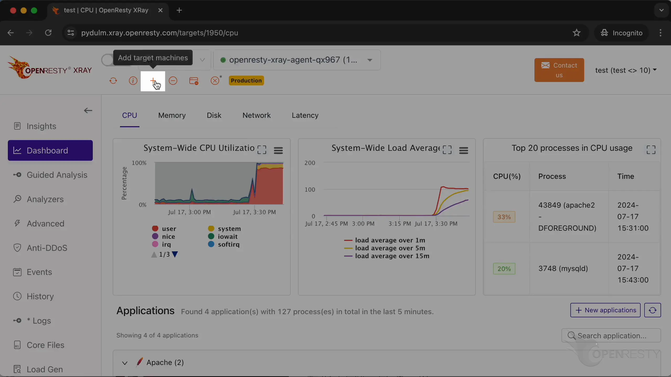 等待第一份分析报告生成,因为第一个 Agent 刚刚完成安装。 “Insights” 页面里的分析报告是汇总所有 Agent 上的所有应用生成的。