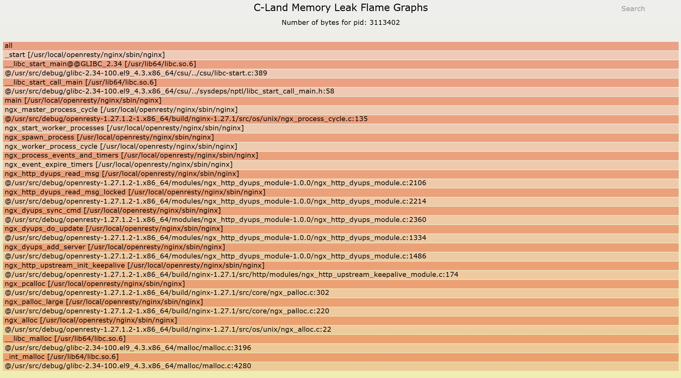 メモリが主に Glibc によって管理され、プロセスが Nginx であることから、これらのメモリは Nginx のメモリプールシステムによって利用されている可能性が最も高いと考えられます。ここで本当に難しいのは、Glibc が確保したメモリが、具体的にどの Nginx メモリプールによって消費されているのかという点です。